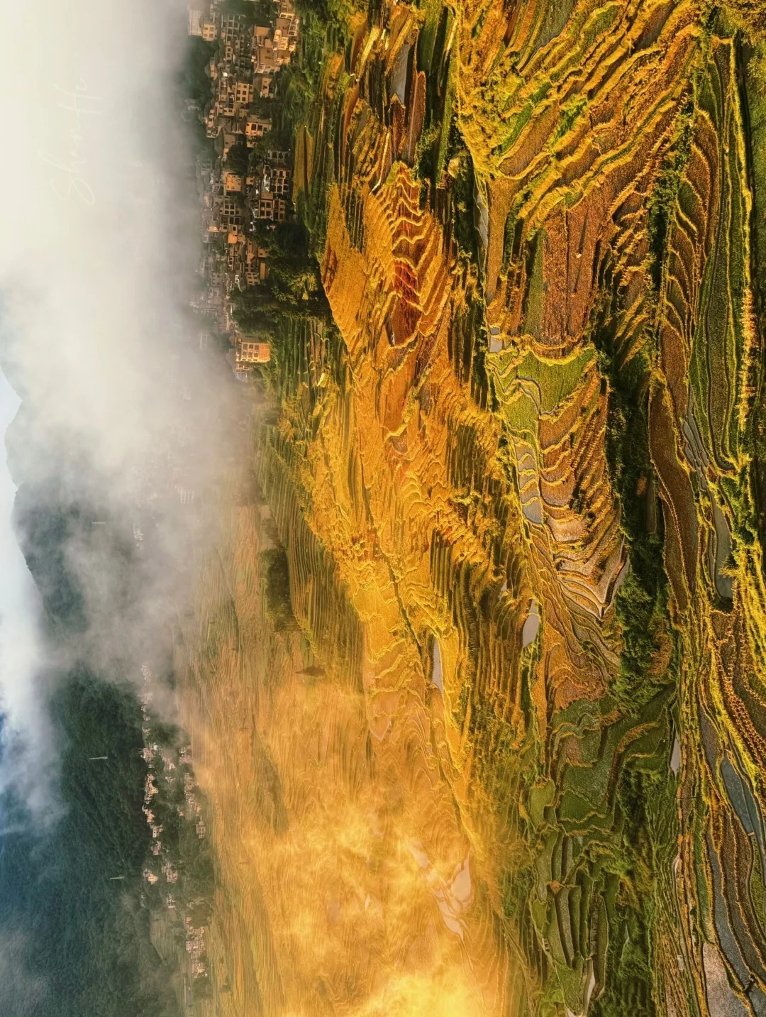 【元阳梯田】元阳梯田位于云南省红河哈尼族彝族自治州元阳县哀牢山南部,是世界文化遗产红河哈尼梯田的核心区。