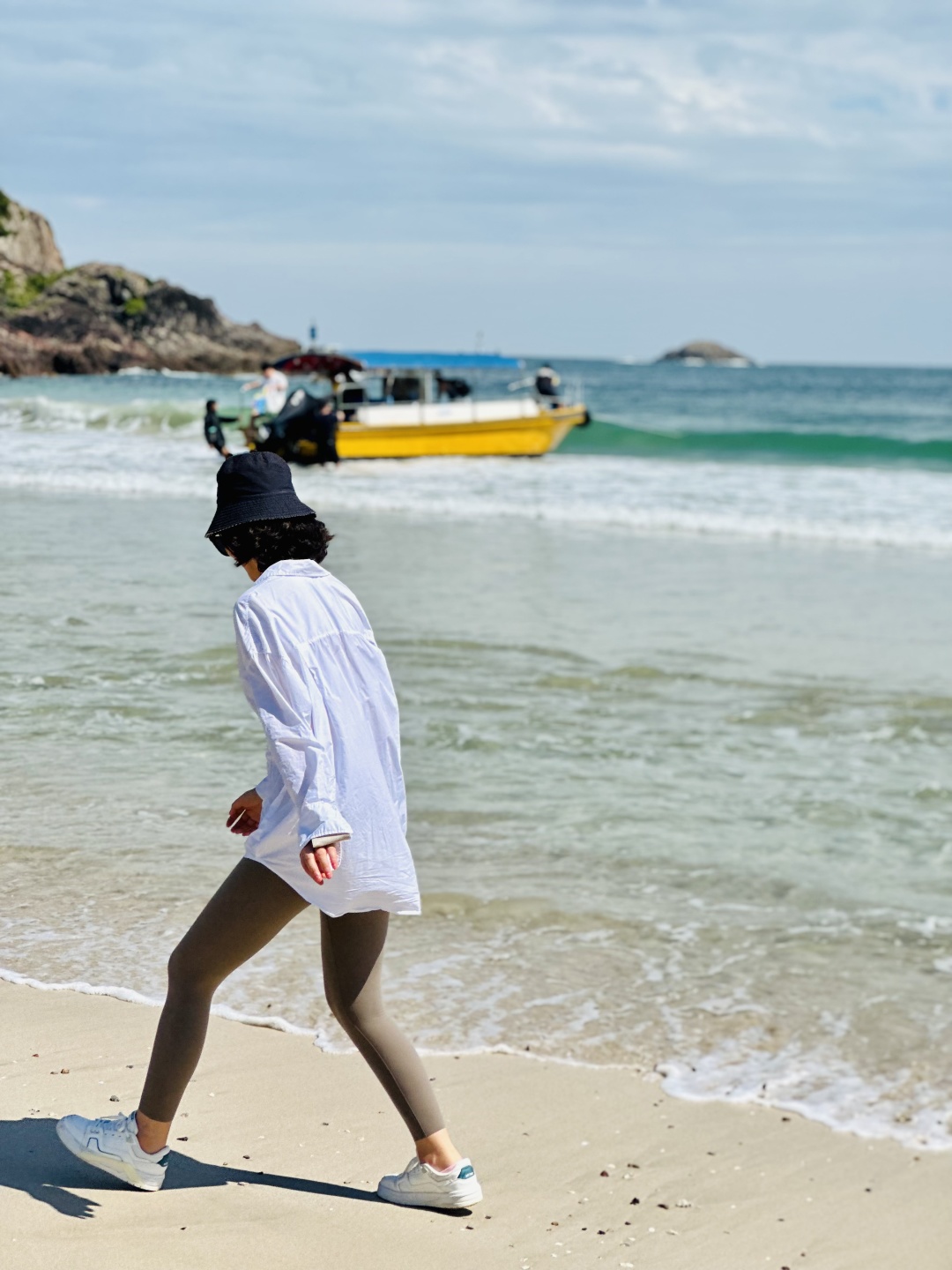 徒步到这里,在蓝色海洋的这里,迎面吹来凉爽的风,可已停下在礁石打卡。抑或是在沙滩上自由自在奔跑,看这浪花一朵朵,都是不错的选择。