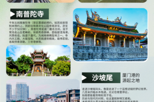 前往【南普陀】,感受闽南佛教圣地之一的文化底蕴。寺内天王殿、大雄宝殿、大悲殿、藏经阁、释迦牟尼卧佛像等建筑宏伟壮观,每日晨钟暮鼓,香烟缭绕。