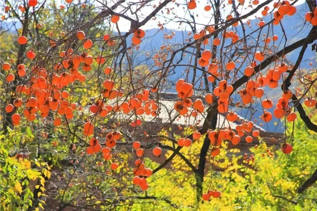 每年秋天的桂峰山山脚下百亩柿子林都挂上饱满的果实桂峰村有着“小恭城”的美誉