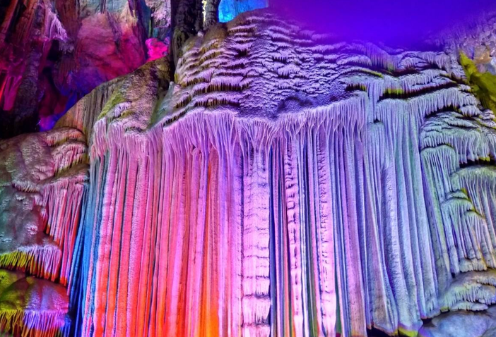 后游览桂林喀斯特地貌溶洞奇观——【银子岩】(AAAA级景区,游览时间约60分钟),银子岩溶洞是典型的喀斯特地貌,贯穿十二座山峰,属层楼式溶洞,洞内汇集了不同地质年代发育生长的钟乳石,有桂林最美岩洞之称,洞内汇集了高达数十米,雄、奇、幽、美,像银子似钻石的钟乳石。洞内奇特的自然景观堪称鬼斧神工,色彩缤纷而且形象各异的钟乳石石柱、石塔、石幔、石瀑,构成了世界岩溶艺术万般奇景,令人流连忘返,美国前总统克林顿也是它的粉丝, 98年访华时为了游览银子岩专门推迟了去香港的班机!