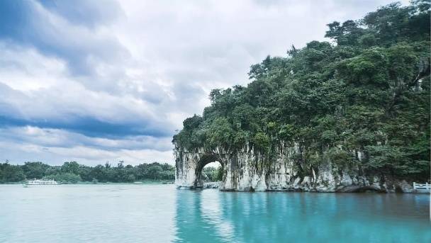 前往游览【象鼻山】(AAAAA级景区,游览时间约50分钟),象鼻山原名漓山,又叫仪山、沉水山,简称象山,位于桂林市滨江路位于广西省桂林市内桃花江与漓江汇流处,是中国首批4A级景区,因酷似一只站在江边伸鼻豪饮漓江甘泉的巨象而得名,被人们称为桂林山水的象征。象鼻山海拔200米,高出水面55米,属于喀斯特地貌,是由3.6亿年前海底沉积的纯石灰岩组成的象鼻山主要景点有水月洞、象眼岩、普贤塔、宏峰寺及寺内的太平天国革命遗址陈列馆等。