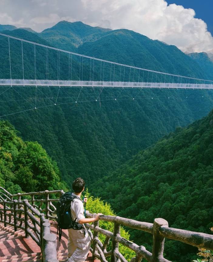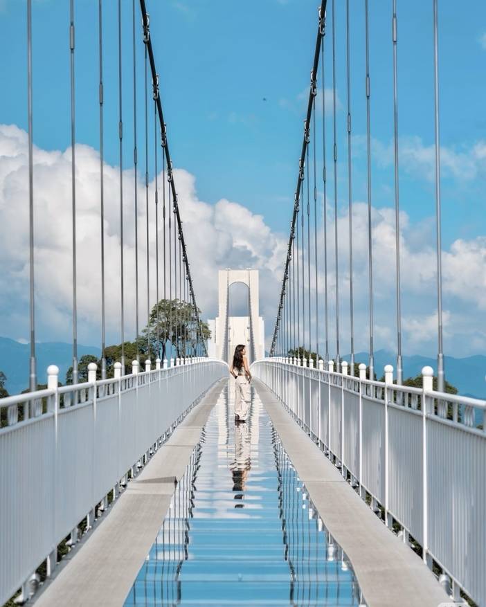 除了高空缆车,还有更刺激的玻璃索桥等着你体验。横穿两山的玻璃索桥全长330米、高差近200米,好像一条盘踞在山间的巨龙一般,气势逼人,惊险刺激。走在玻璃索桥上看三百山,山间云雾随风涌起又飘散,时光也都慢了下来。