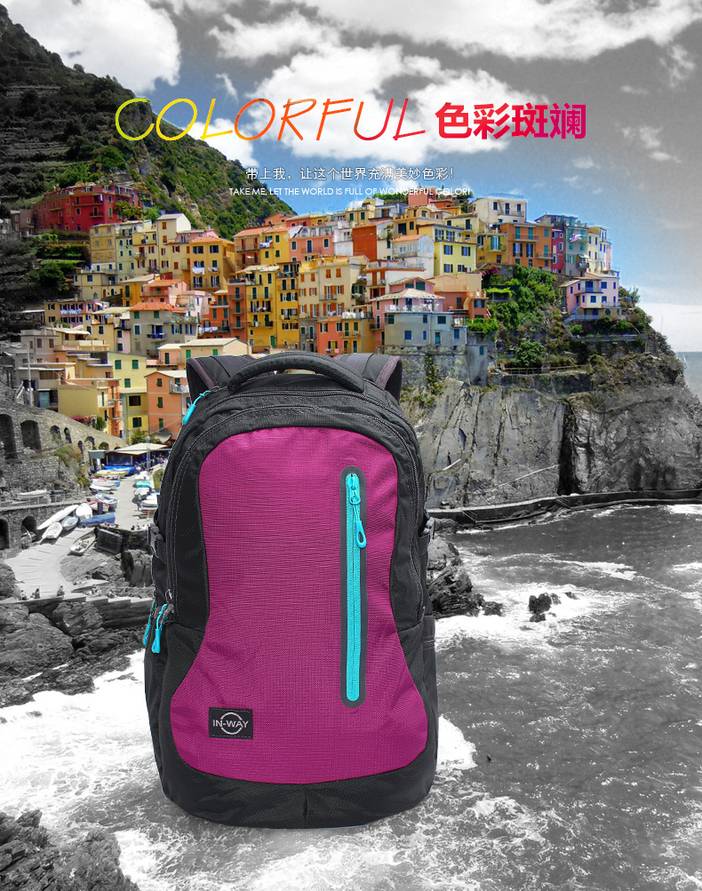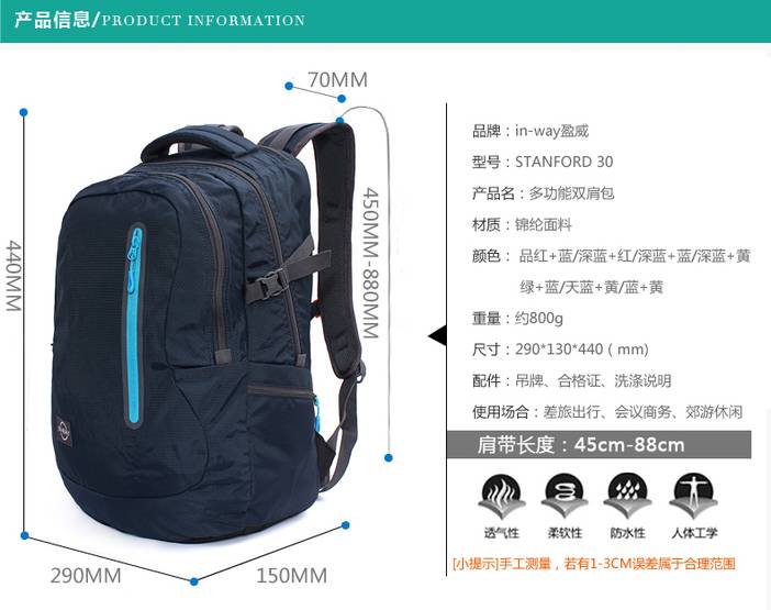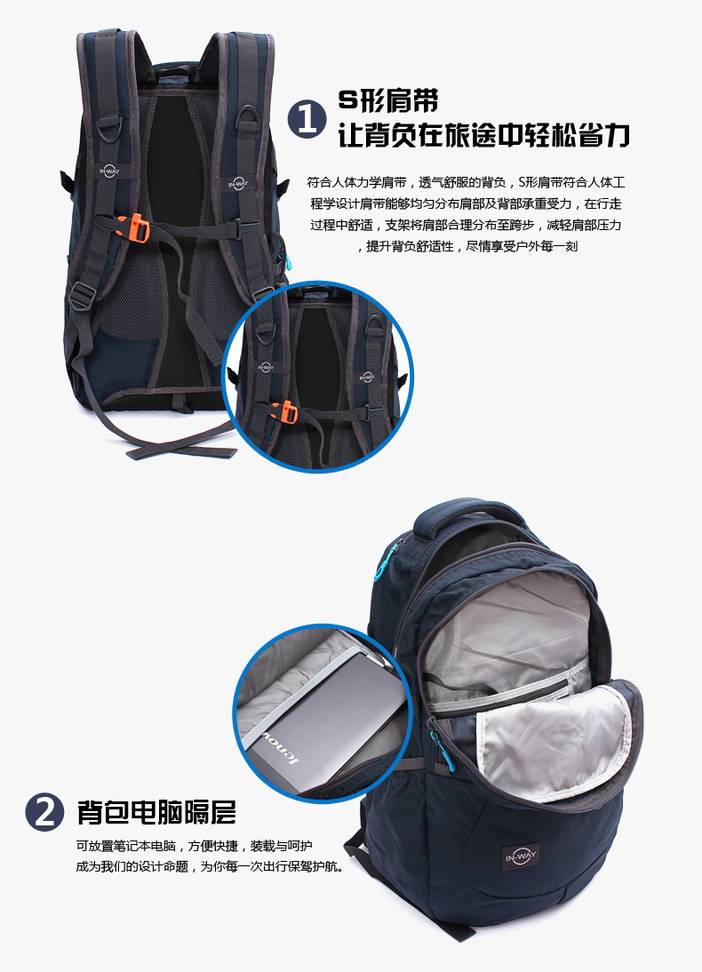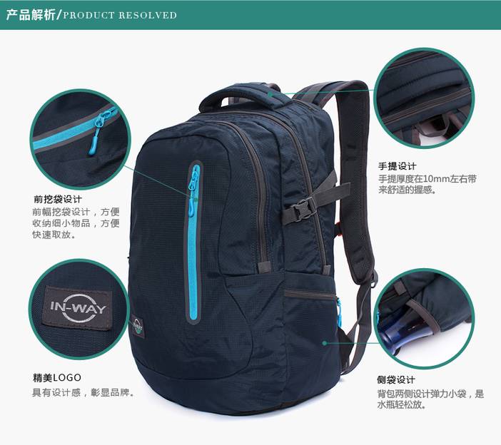 in-way/盈威12-0438新款双肩包运动双肩旅行包防水拉链电脑背包